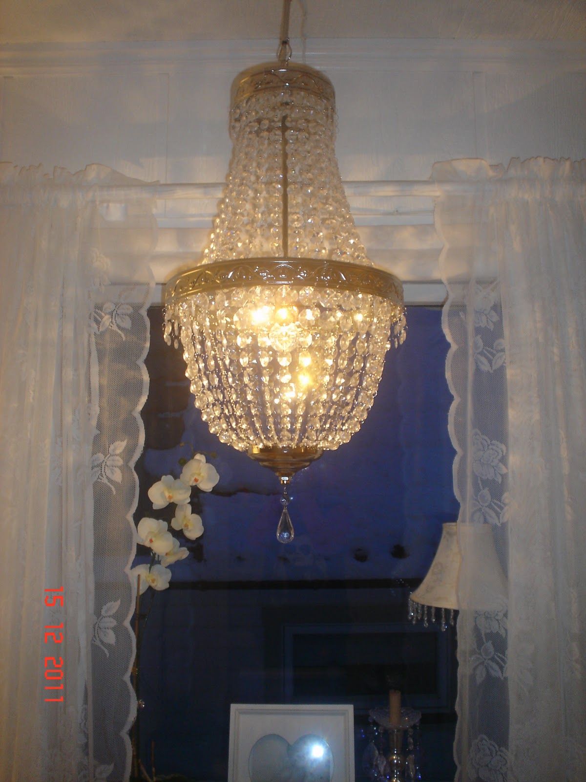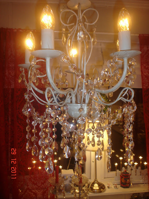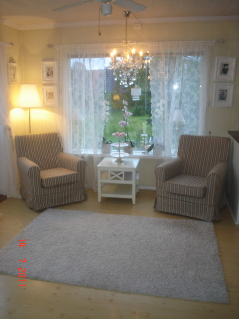 hei jenter..i det siste har det vært soverommet jeg har ordnet,malt skap og hengt opp nye bilder og speil.idag har jeg vasket vinduene der og hengt opp nye gardiner. og min snille mann har hengt opp lysekronen..klarte om sider å overtale han,han ville egentlig beholde de gamle spottene som var i taket.men etter vi var ferdig var han enig at det ble lekkert med lysekrone i taket.nå passer soverommet inn i stilen vi har i resten av huset..sengen har jeg redd opp med et hekleteppe som barnas oldemor heklet til oss..er veldig gla i det..har pyntet sengen med forskjellige pynteputer,bruker å ligge å blogge på sengen når jeg har litt ledig tid for meg selv..syns det ble så koselig...klem fra åshild