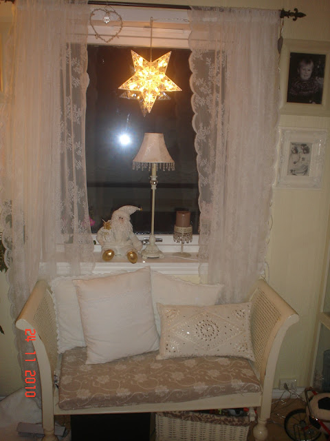 her er huset mitt sett fra utsiden,syns det blei så fint etter at vi malte det ifjor sommer...krysset i røstet har min mann laget etter en mal som jeg lagde til han..syns det ble en fin detalj til det gamle huset vårt...fargen på huset heter latte..og fargen rundt vinduet heter lys nevada..huset var grønt i utgangspunktet og trengte 3 strøk med maling...gleder meg til sommeren ,da skal jeg stelle i hagen og blogge om den...klem åshild...