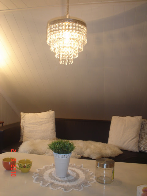 har lysekronedilla og måtte selvfølgelig ha en på loftstua åsså..syns de pynter så fint opp..denne er kjøveldi dekorativt...pt på bohus til