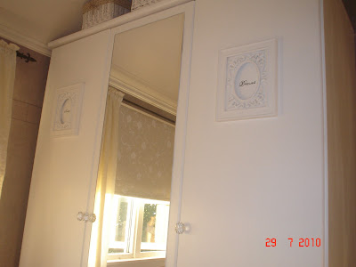 gokveld..i dag er det gråvær i nord,varmt men masse regn.har benyttet anledningen til å vaske masse klær,på mandag er det på jobb igjen etter 4 ukers ferie..jeg har åsså fått malt ferdig et gammelt medisinskap,det var opprinnelig i kirsebær farge,og her er resultatet.har malt det hvitt og lagd slitte kanter på det.glassknott er åsså kommet på .medisinskapet henger på soverommet og matcher de andre skapene jeg har pusset opp der.hjertet har jeg sydd selv..ønsker alle som er innom en fin kveld.klem fra åshild.