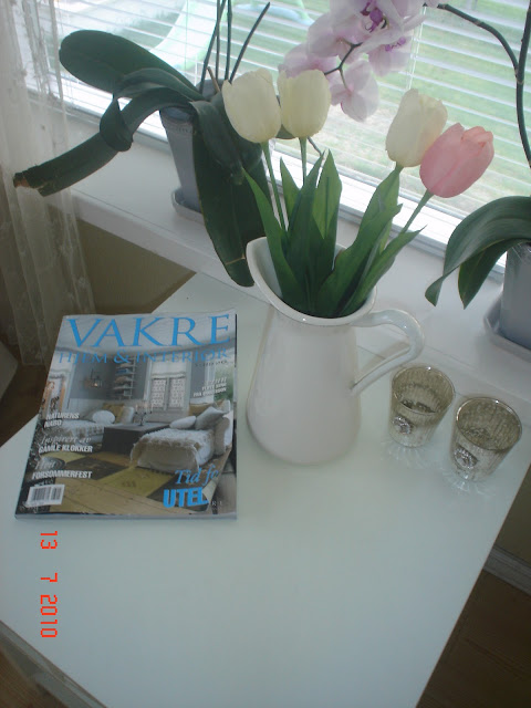 er så arti å komme hjem å ordne i stua med nye møbler fra ikea..denne lekre vasen fant jeg på min ikea tur..tulipanene åsså..