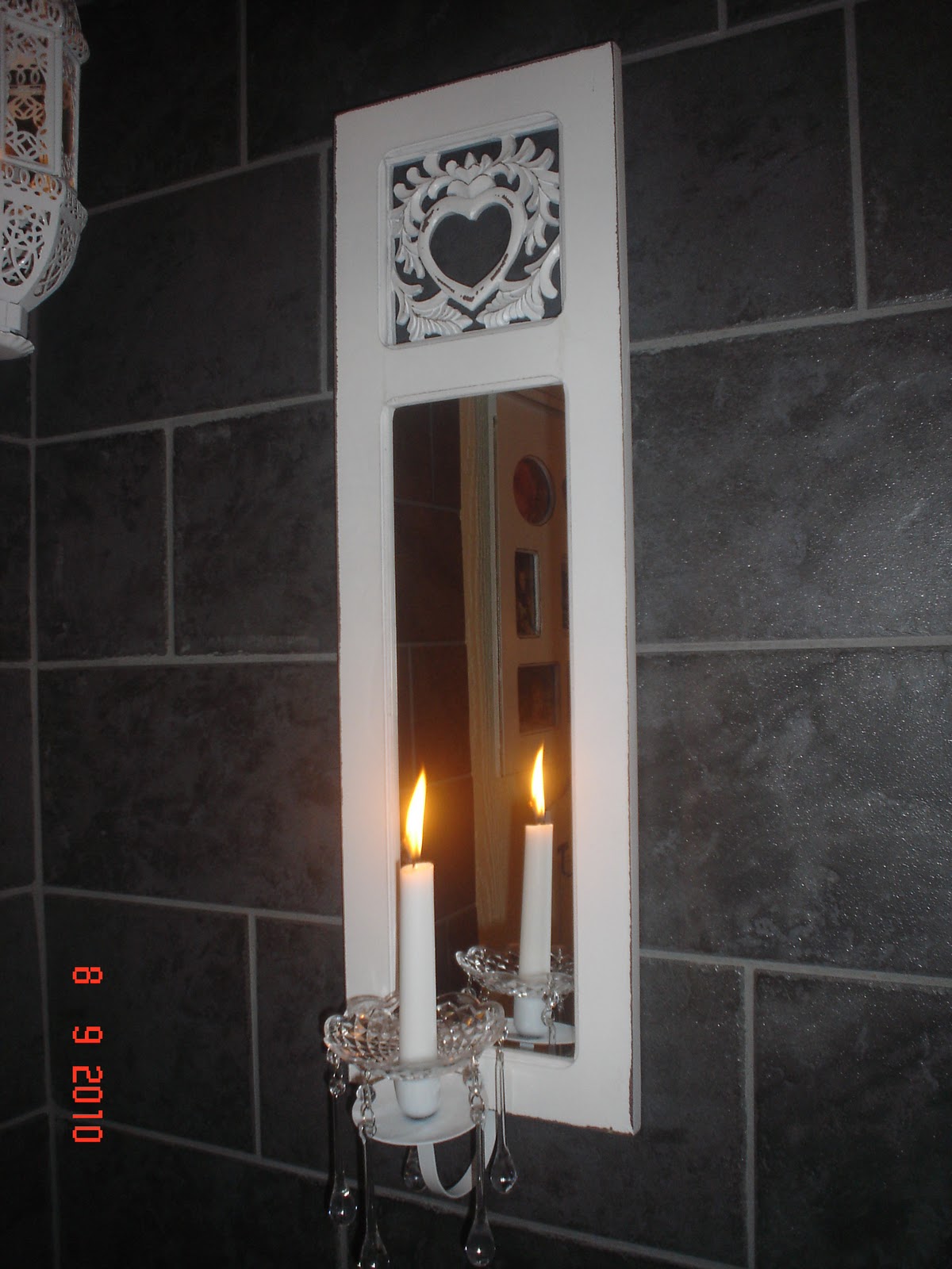 hei jenter.idag har jeg endeli litt tid til å blogge litt,dagene er hektiske med 3 barn og full jobb..men hver onsdag har jeg fri og idag har jeg vært på bohus og funnet disse nydelie speilene i shabby chick stil.slitte kanter og utskjæringer,kunne ikke motstå fristelsen.. speilene har jeg hengt på flisene over peisen i stua,har hengt et på hver side for å få en fin symetri..lysmasjettene er åsså fra bohus og kostet bare 29,90 pr stk..speilene kom så godt fram på den mørke bakgrunnen, en fin kontrast til veggen..ønsker alle en fin onsdagskveld.mange klemmer fra åshild